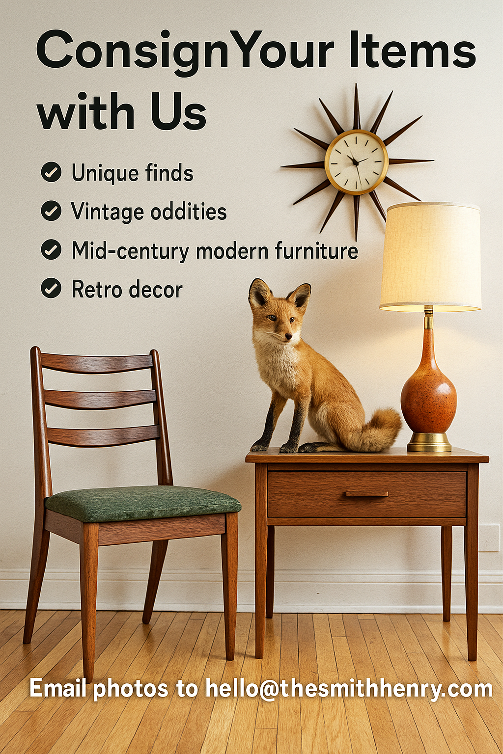 We love giving new life to truly special pieces. We are not able to take just anything, but if you have something unusual, a quirky oddity, or an authentic mid-century modern gem, we would love to see it. Send a few clear photos and a short note about what you would like to consign, and we will review and let you know if it is a fit for our collection.
