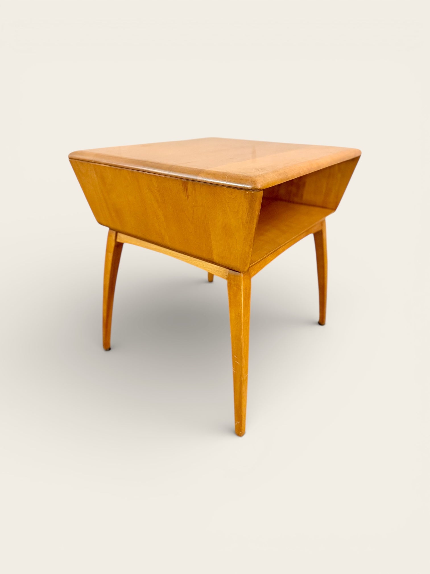Heywood-Wakefield is a well-known American furniture company with a history dating back to the 19th century. The company became especially prominent in the mid-20th century for its modernist designs, which are now considered iconic examples of American mid-century furniture. Their pieces are known for clean lines, solid construction, and frequent use of birch wood finished in light, blonde tones.