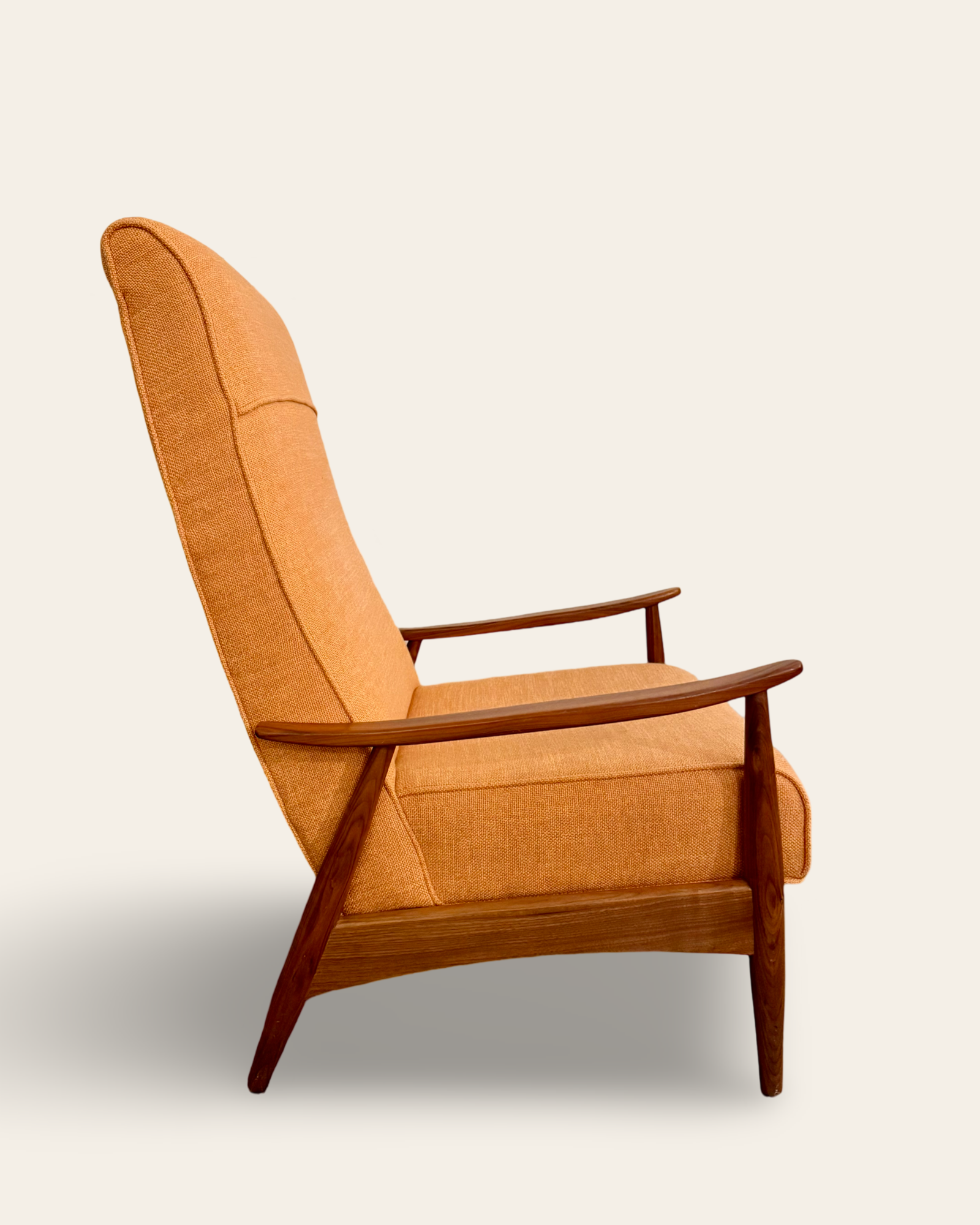 Orange Mid Century Modern Milo Baughman for Thayer Coggin “Recliner 74” Lounge Chair in Stationary Position