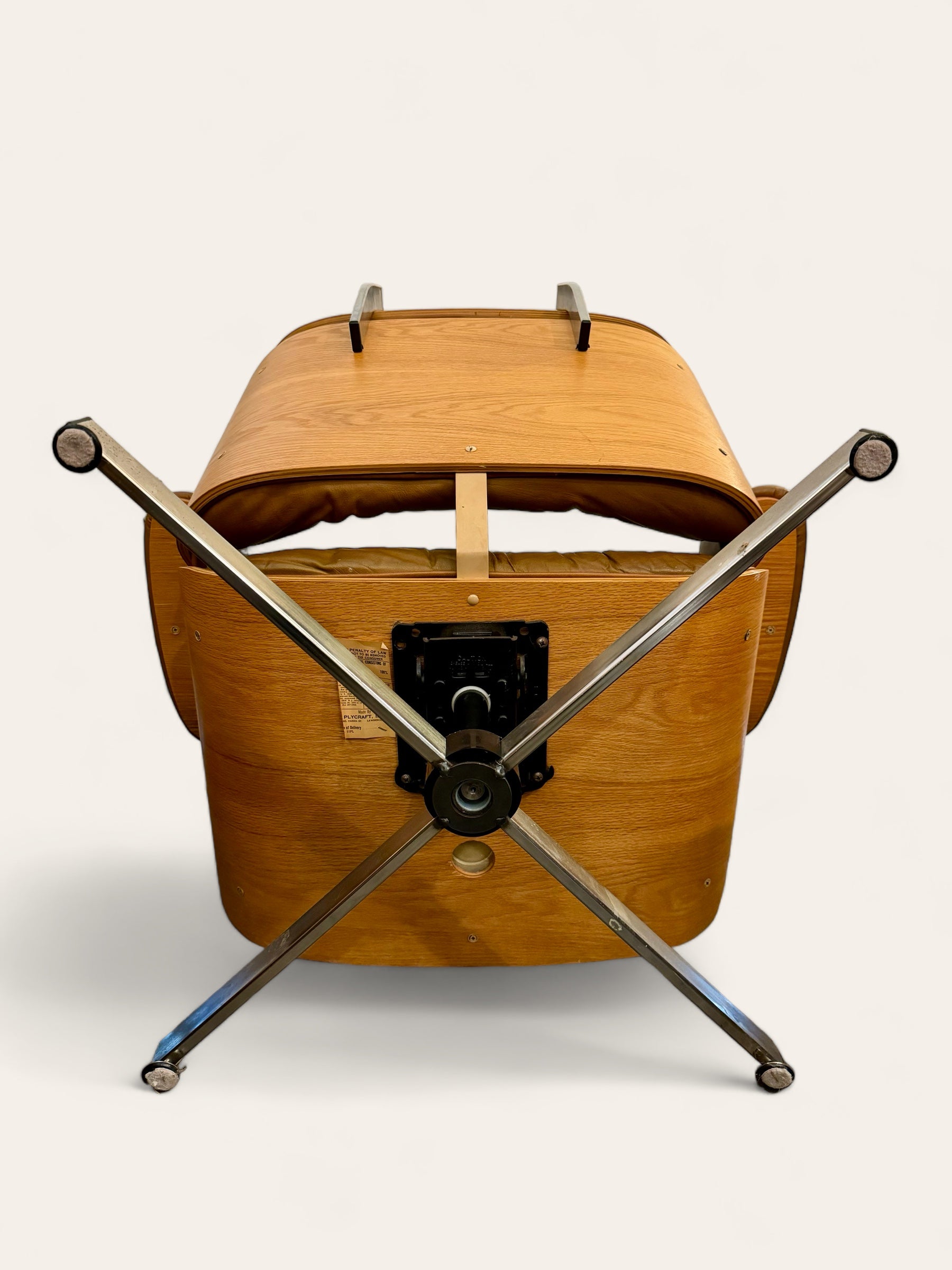 An original vintage 1960s/70s Plycraft Eames-style lounge chair in the classic camel color with zero rips, stains, tears, or damage to the wood. Boasting the original manufacturer's tag, this one's a real gem, folks. It's as comfortable as it is beautiful and if you've been looking for one of these classic chairs, this might just be the one.