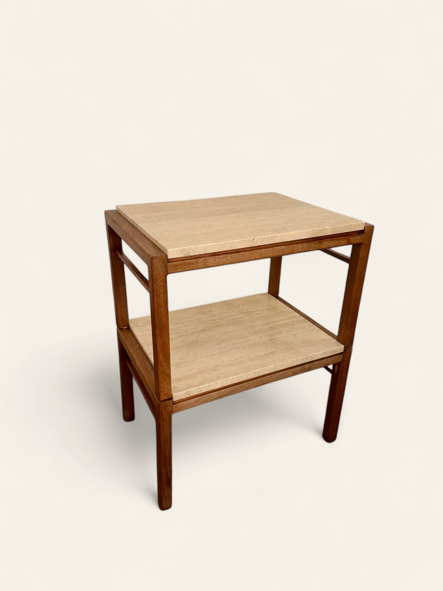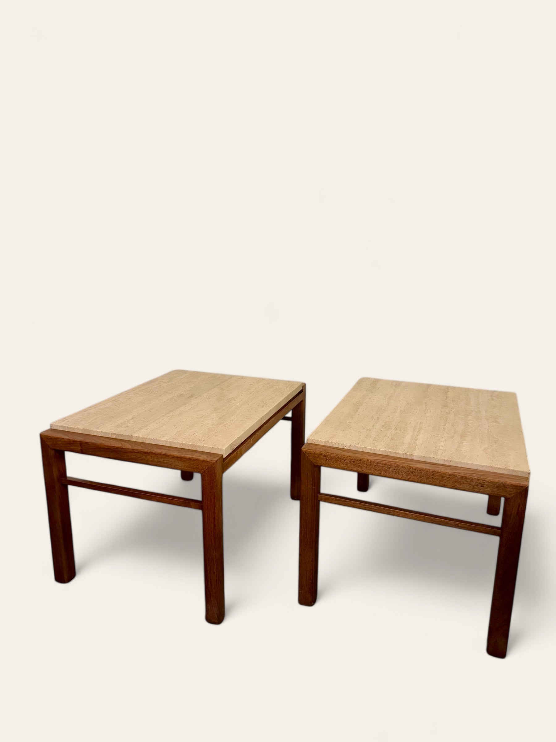 Pair of Vintage MCM Travertine and Wood Side Tables