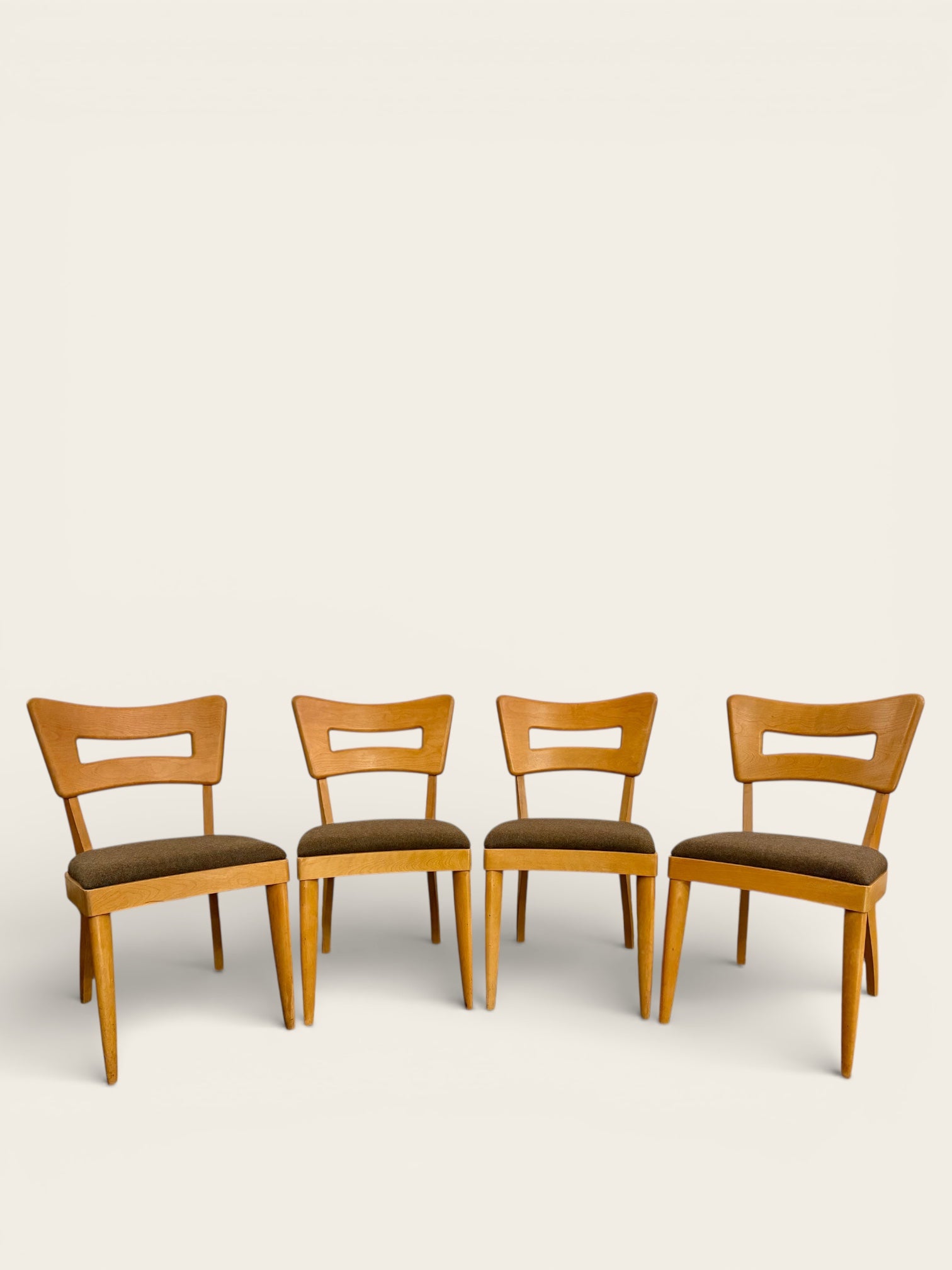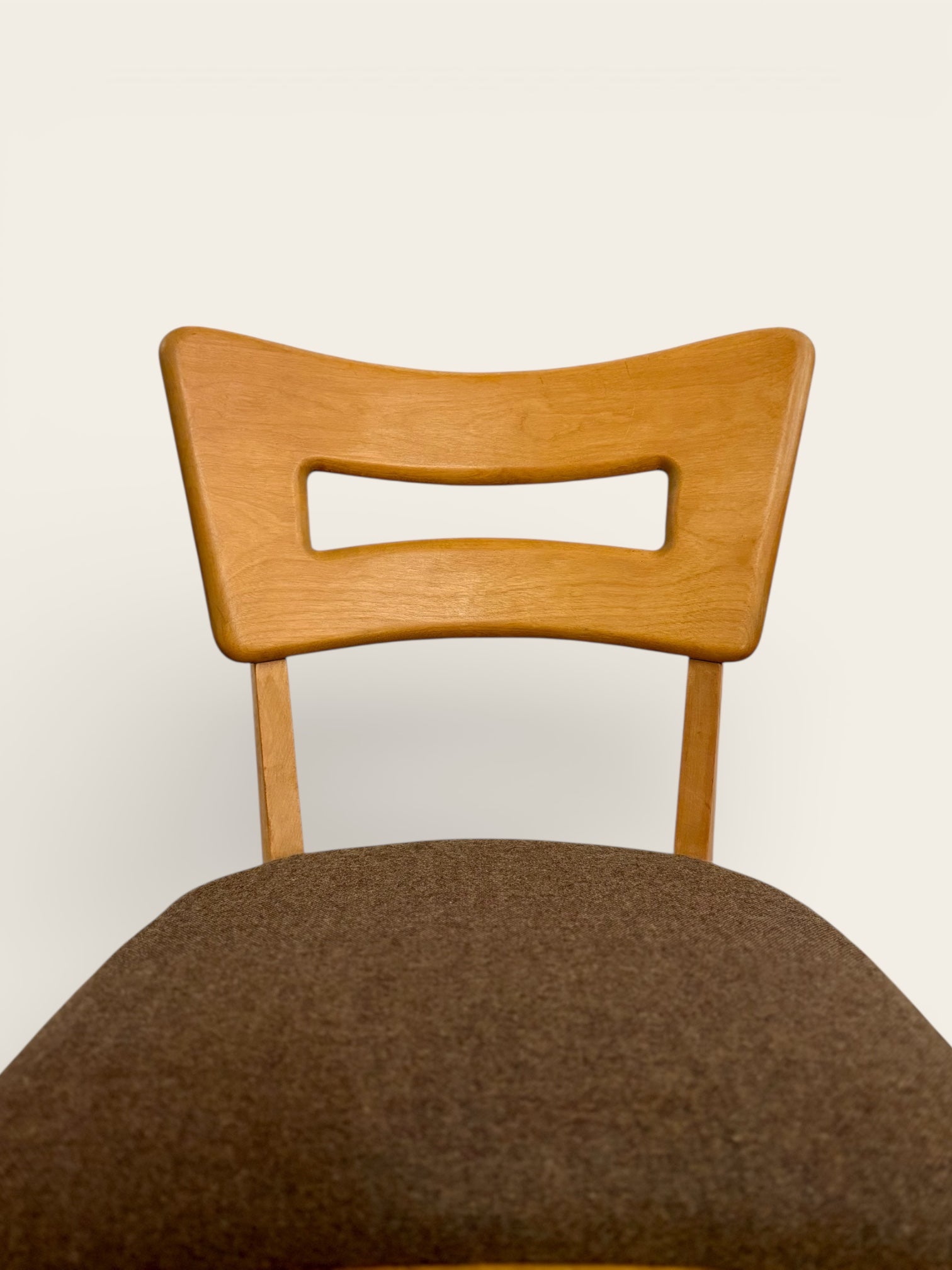 Beautiful set of four authentic 1950s Heywood-Wakefield “Dogbone” dining chairs, classic mid-century design in solid birch. Clean lines, sculpted backs, and a warm wood tone that works easily in both modern and vintage interiors.