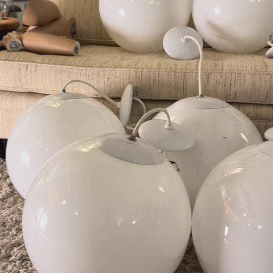 Vintage 1960s MCM Milk Glass Globe or Dome Pendant Lights, 13” Diameter