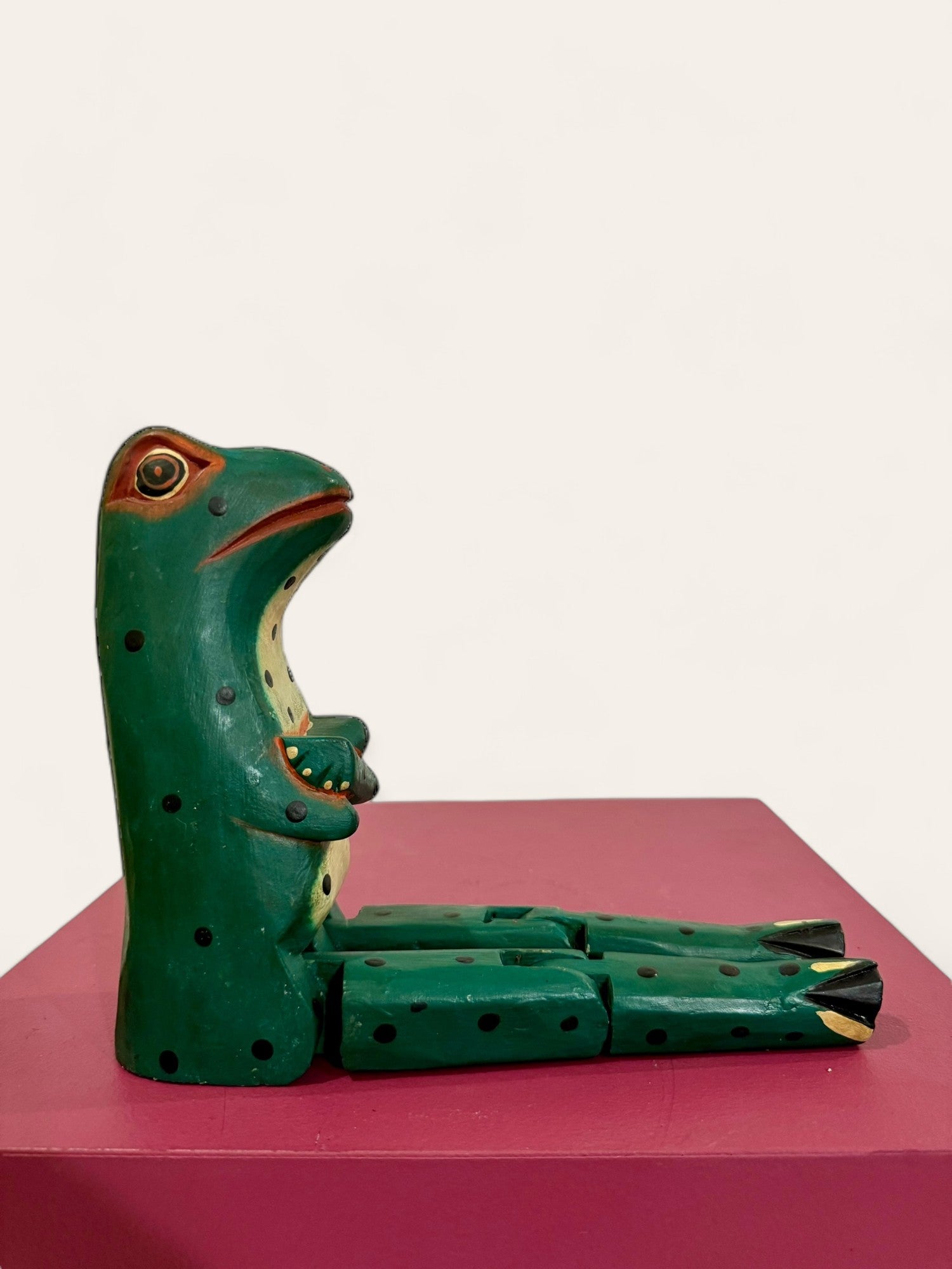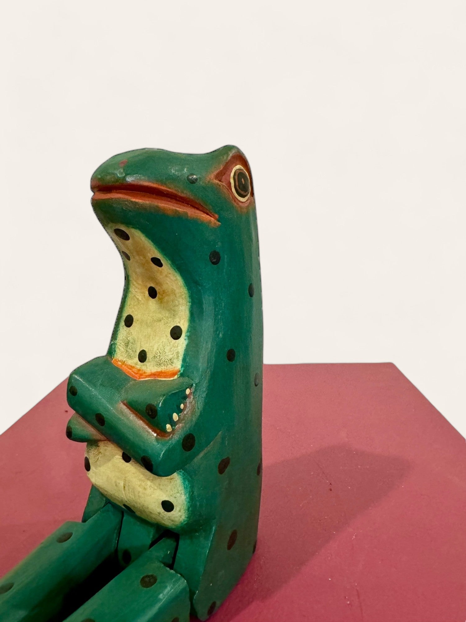 Vintage Handmade and Hand Painted Folk Art Frog with Articulated Legs
