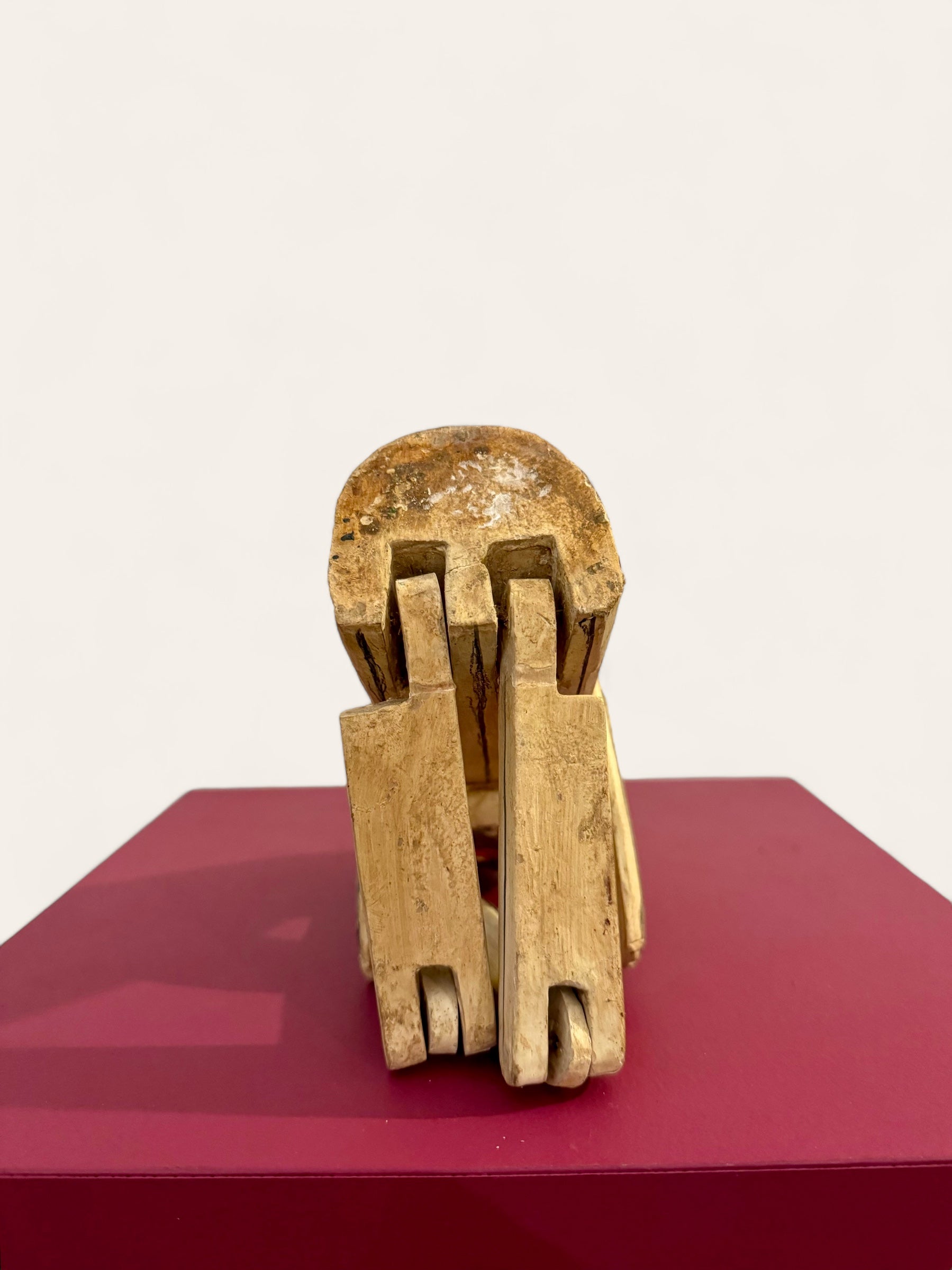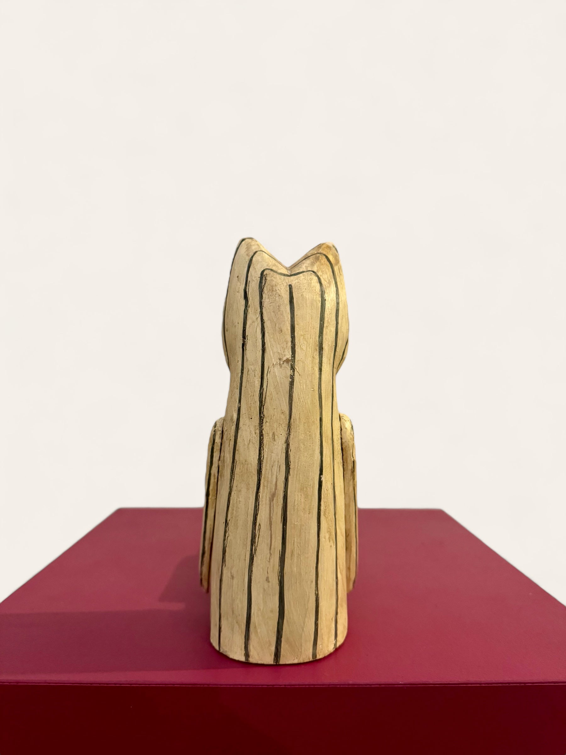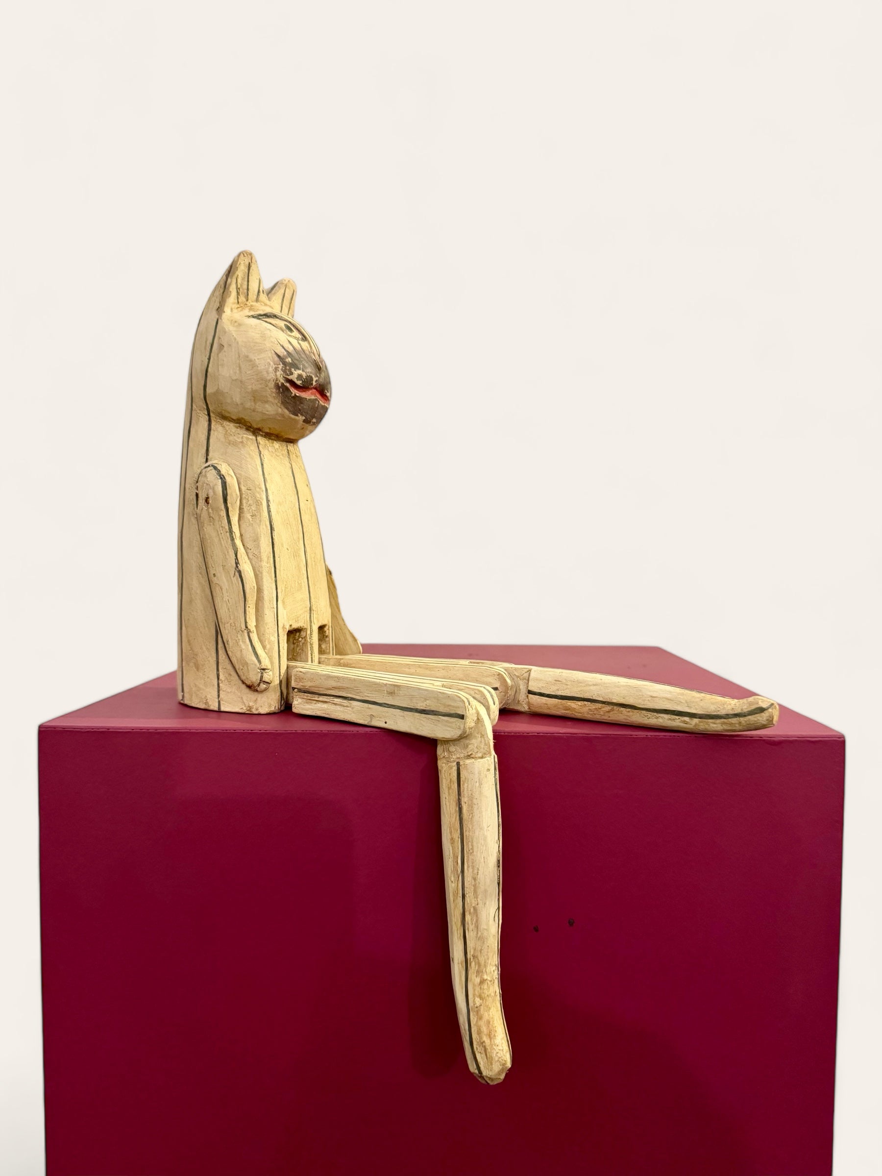 Vintage Handmade and Hand Painted Offwhite Folk Art Cat with Articulated Arms and Legs