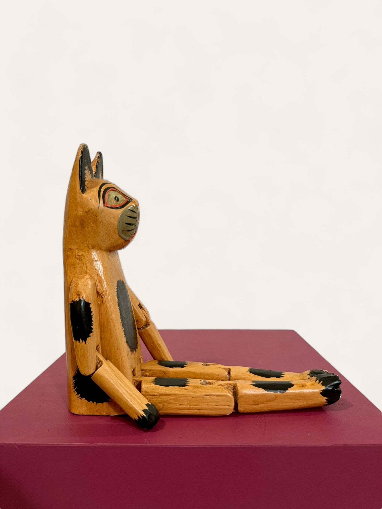 Vintage Handmade and Hand Painted Orange Folk Art Cat with Articulated Arms and Legs