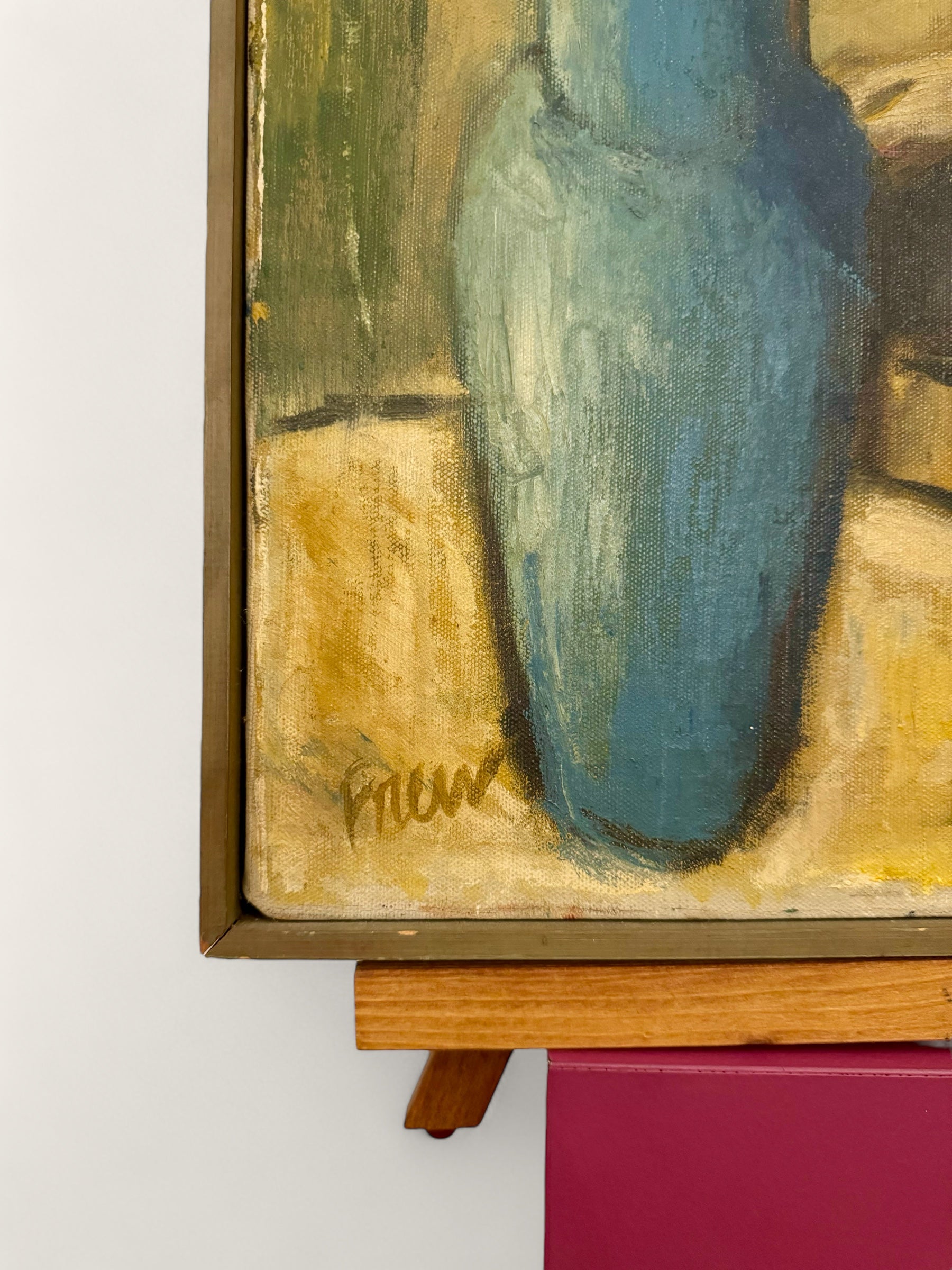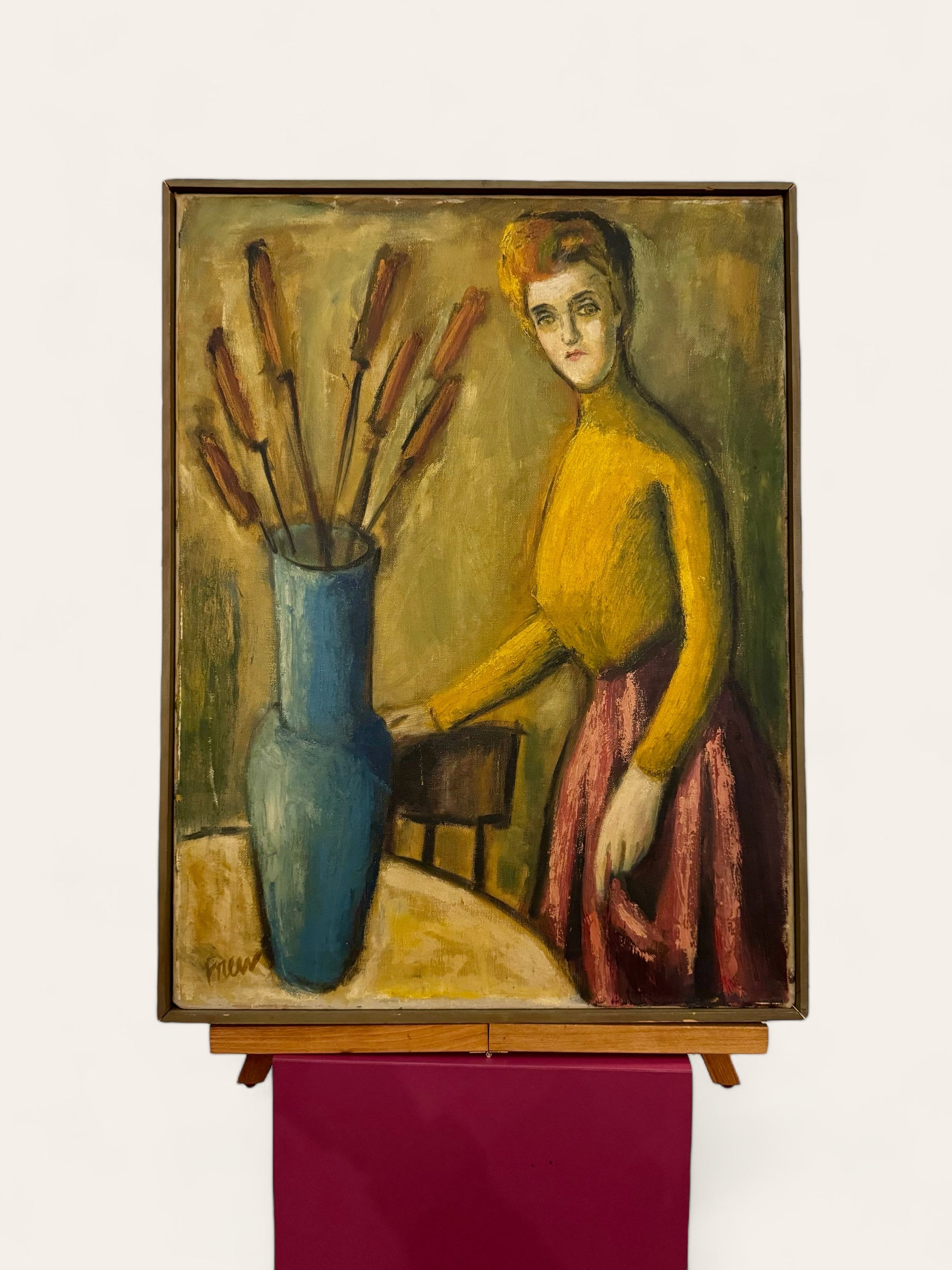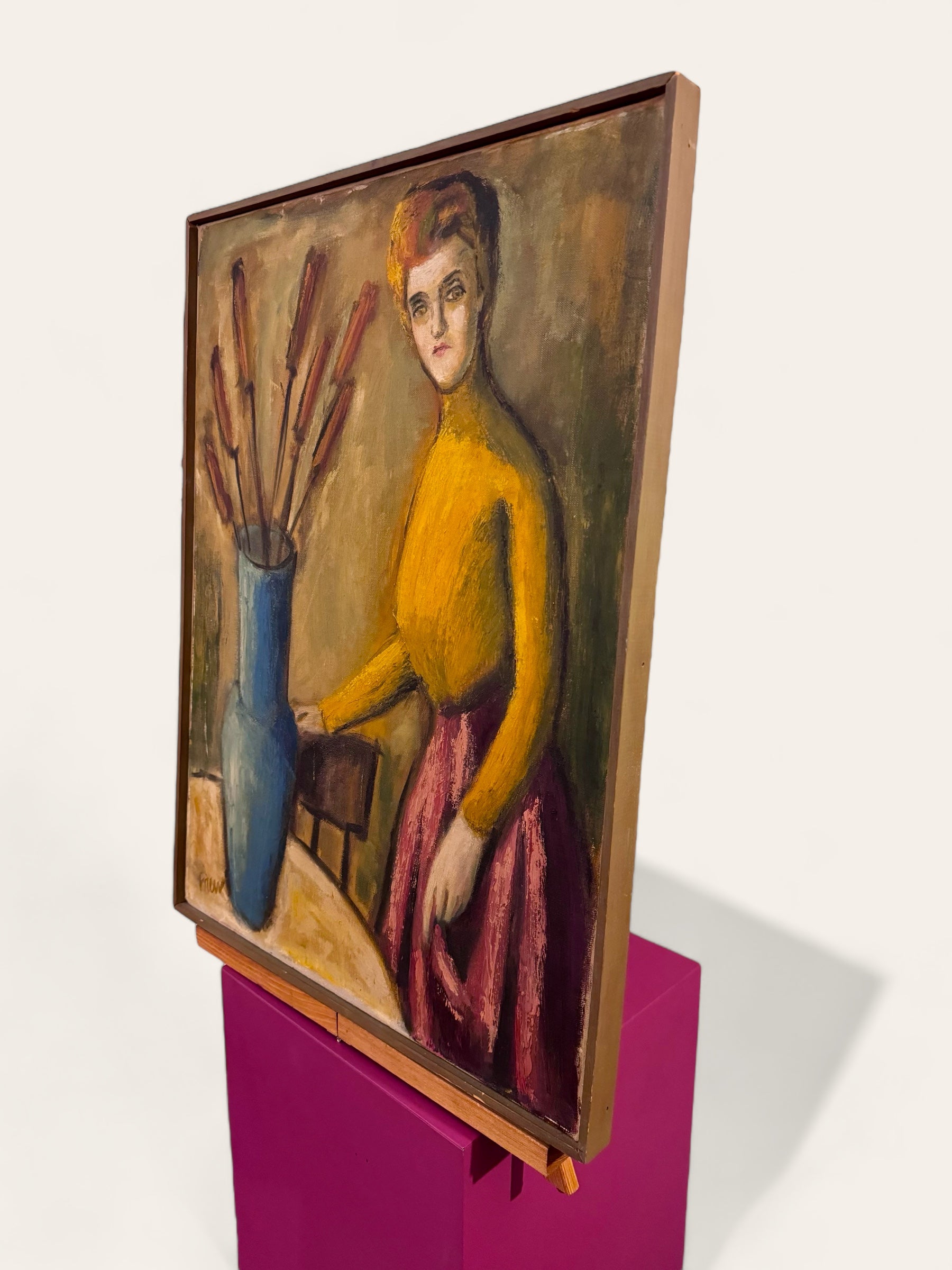 Vintage MCM Original Oil Painting of a Woman with Flowers